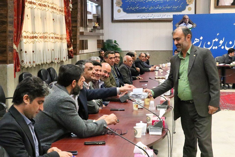 در پایان این جلسه، پس از رعایت تشریفات قانونی، اعضای هیئت اجرایی هفتمین دوره انتخابات شوراهای اسلامی شهر و روستا در شهرستان بوئینزهرا انتخاب و معرفی شدند.
